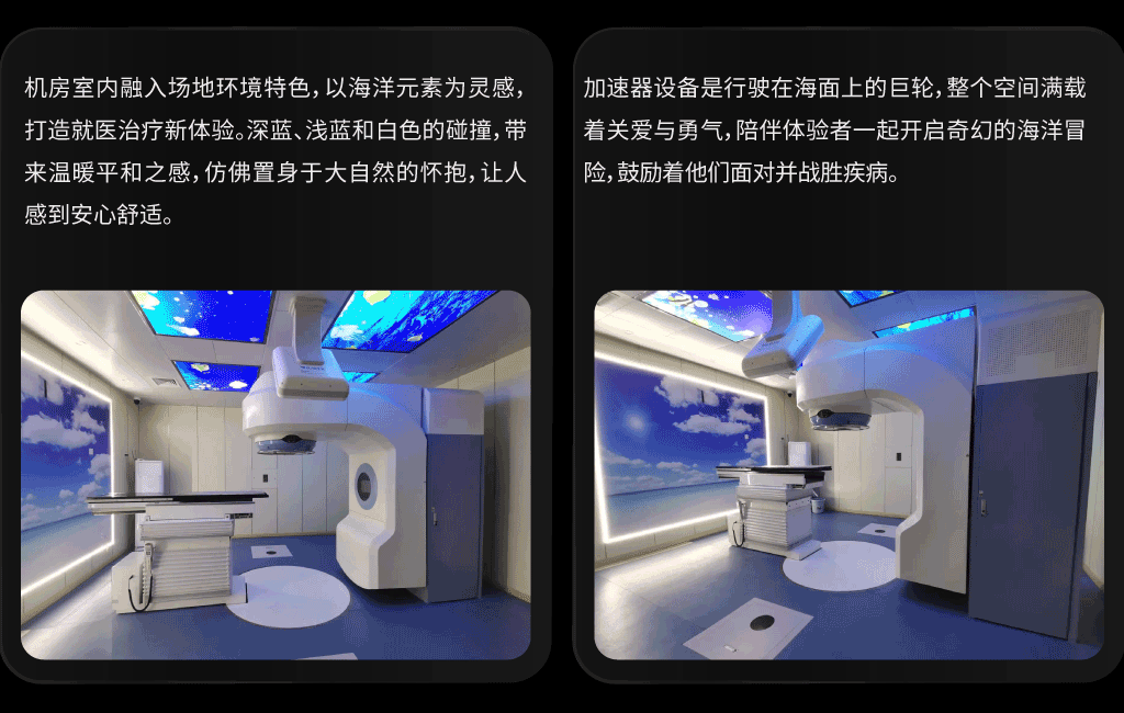 设计理念:充分解读放疗的特性以及人与设备的需求,在美观基础上选用安全、高效、耐用的新型材料,让空间传递出无微不至的关怀。