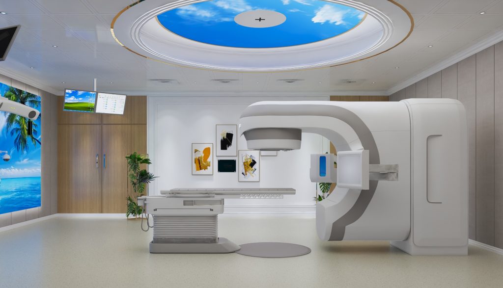 加速器机房的室内装修旨在诠释中南医院“大医精诚、敬畏生命”的院训,饱含关怀与温度的设计体现了生命的尊严与生活的希望,为构建和谐美好的医患关系创造积极条件。
